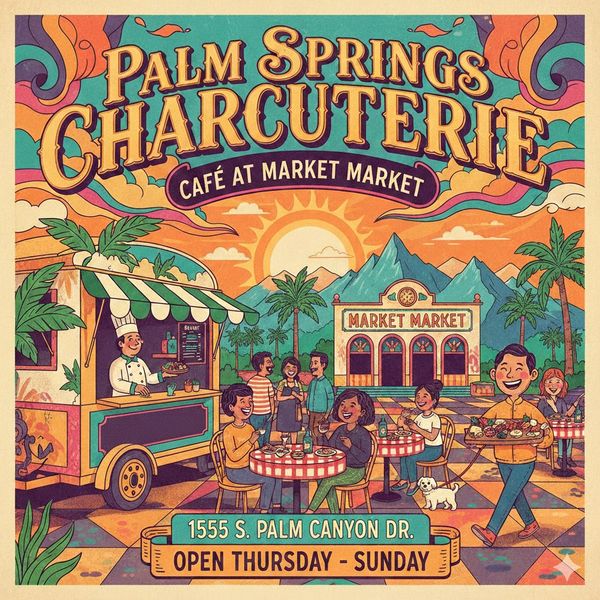 Come on out and enjoy Fresh, Savory, and Satisfying selections at The Palm Springs Charcuterie "Café" at Market Market, 1555 S. Palm Canyon Dr. Thursday - Sunday. Indoor and outdoor seating available. Enjoy breathtaking views with THE BEST curated vintage shopping experience in Palm Springs. See you soon!